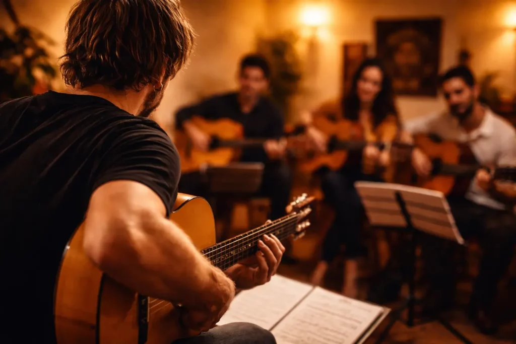 Que vous soyez débutant et souhaitiez apprendre les bases de la guitare flamenca, ou que vous soyez guitariste de niveau intermédiaire ou avancé, nous avons un cours adapté à vos besoins.